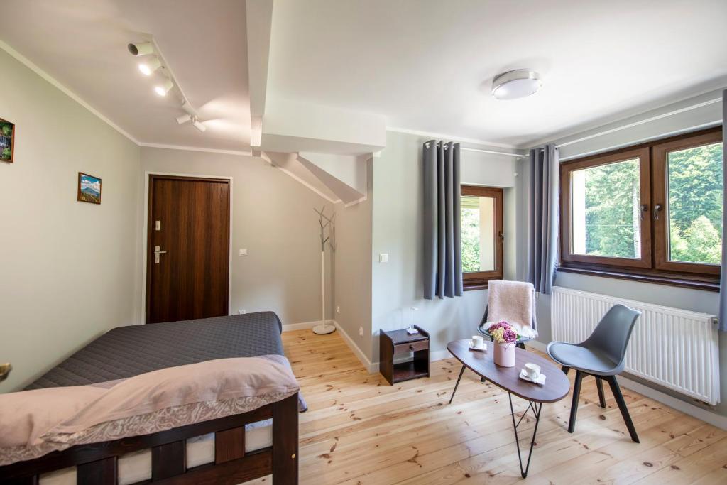 Łącznie oferujemy 11 miejsc noclegowych. Do dyspozycji gości przygotowaliśmy 3 komfortowe pokoje z prywatnymi łazienkami:
